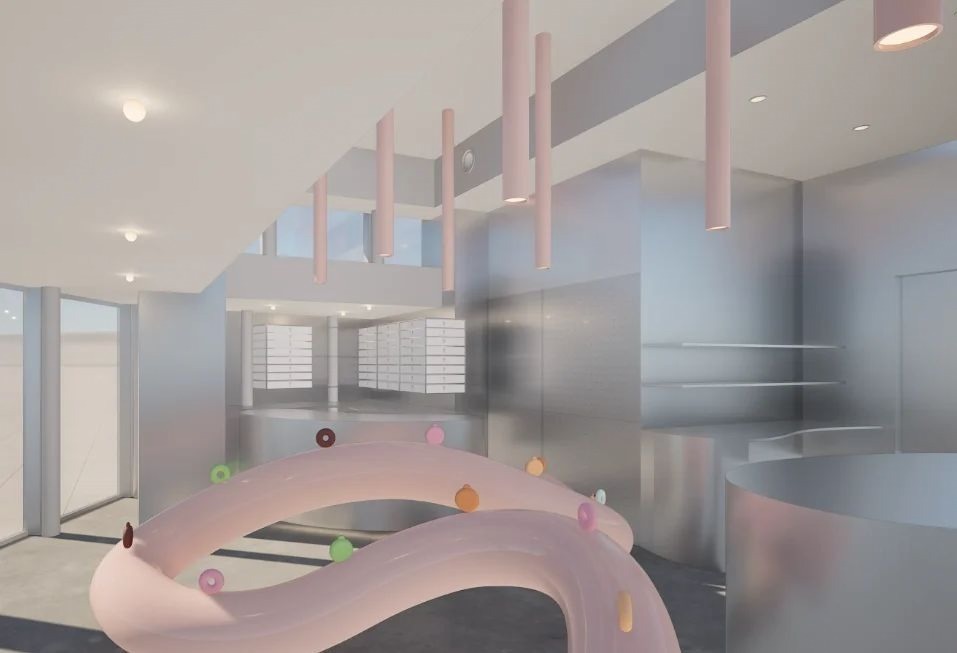店舗のコンセプトは「シームレス」で、ドーナツの製造過程を見ることができる開放的な空間となっています。