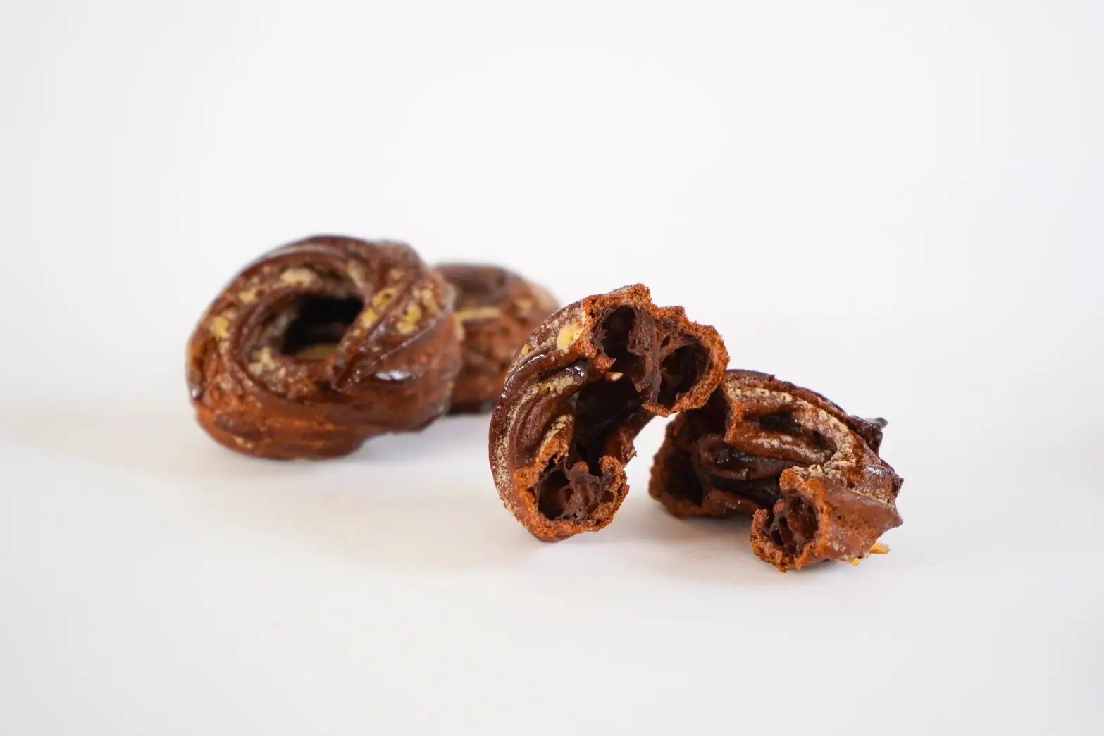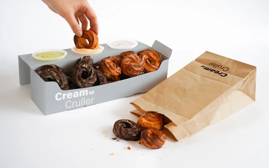「Cream or Cruller」の看板商品『シュークルーラー』は、オリジナルの生地とカカオ生地の2種類。特筆すべきはその食感!底面をキャラメリゼすることで、外はカリカリ、中はフワッという、まさに良いとこ取りのハイブリッドスイーツなんです。