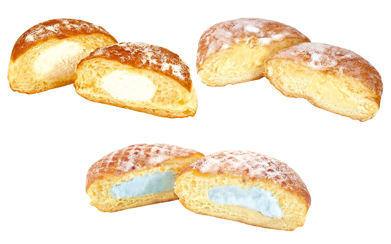 - milkyクリームドーナツ(プレーン、季節限定【カスタード、ミルキーソーダ】) 各税込199円