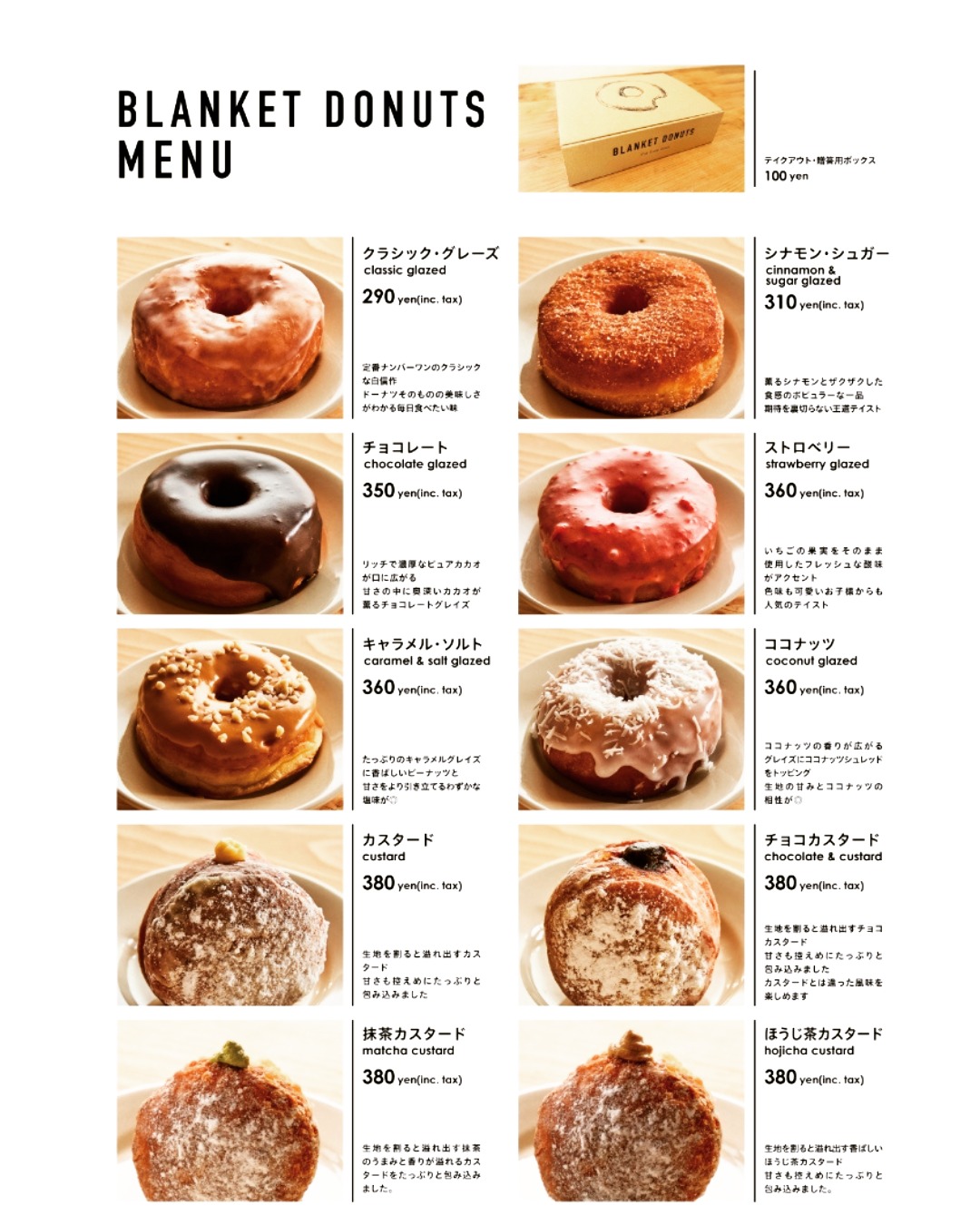 「BLANKET DONUTS相模原店」で楽しめるドーナツのラインナップと価格は以下の通りです。