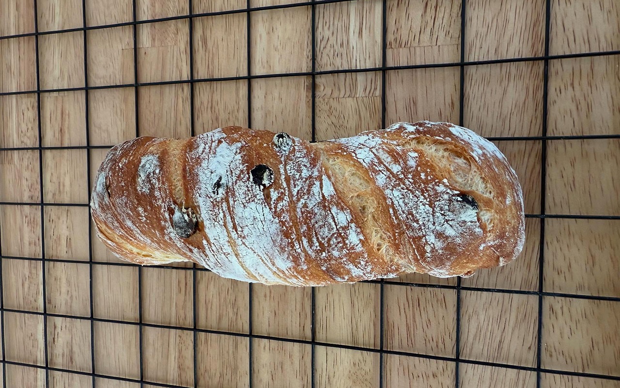 白ワインにじっくり漬け込んだレーズンがたっぷり入ったリュスティックです。ふんわりとした生地と、風味豊かなレーズンの相性は抜群。 価格:280円(税抜)
