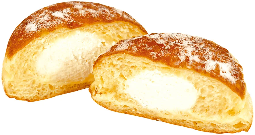 - プレーン: ふわもち食感のドーナツに、ミルキー風味の軽やかなクリームをたっぷり詰め込んでいます。