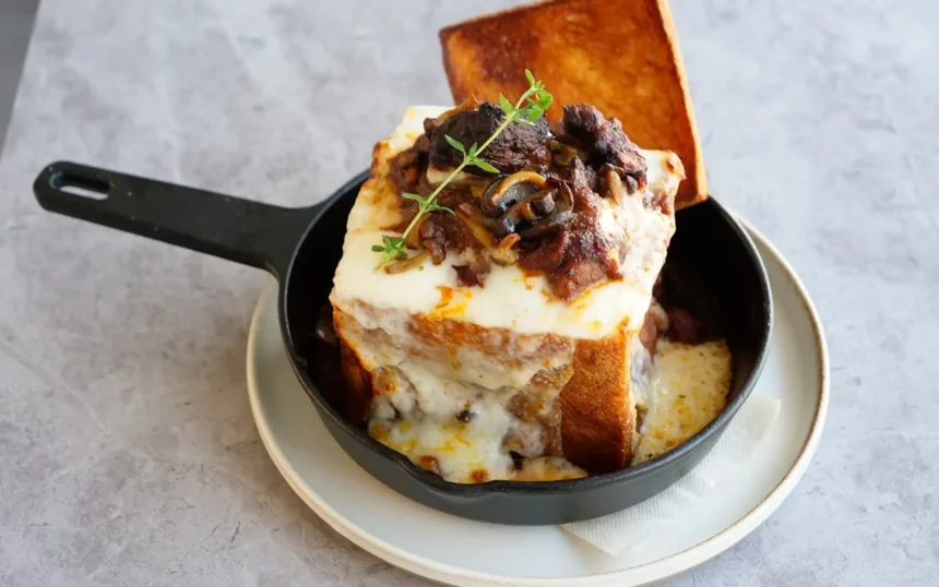 - 牛タンビーフシチューのムートースト お店の看板商品である食パン『ムー』に、とろとろに煮込んだ仙台名物・牛タンと濃厚なチーズを合わせて焼き上げた一品です。