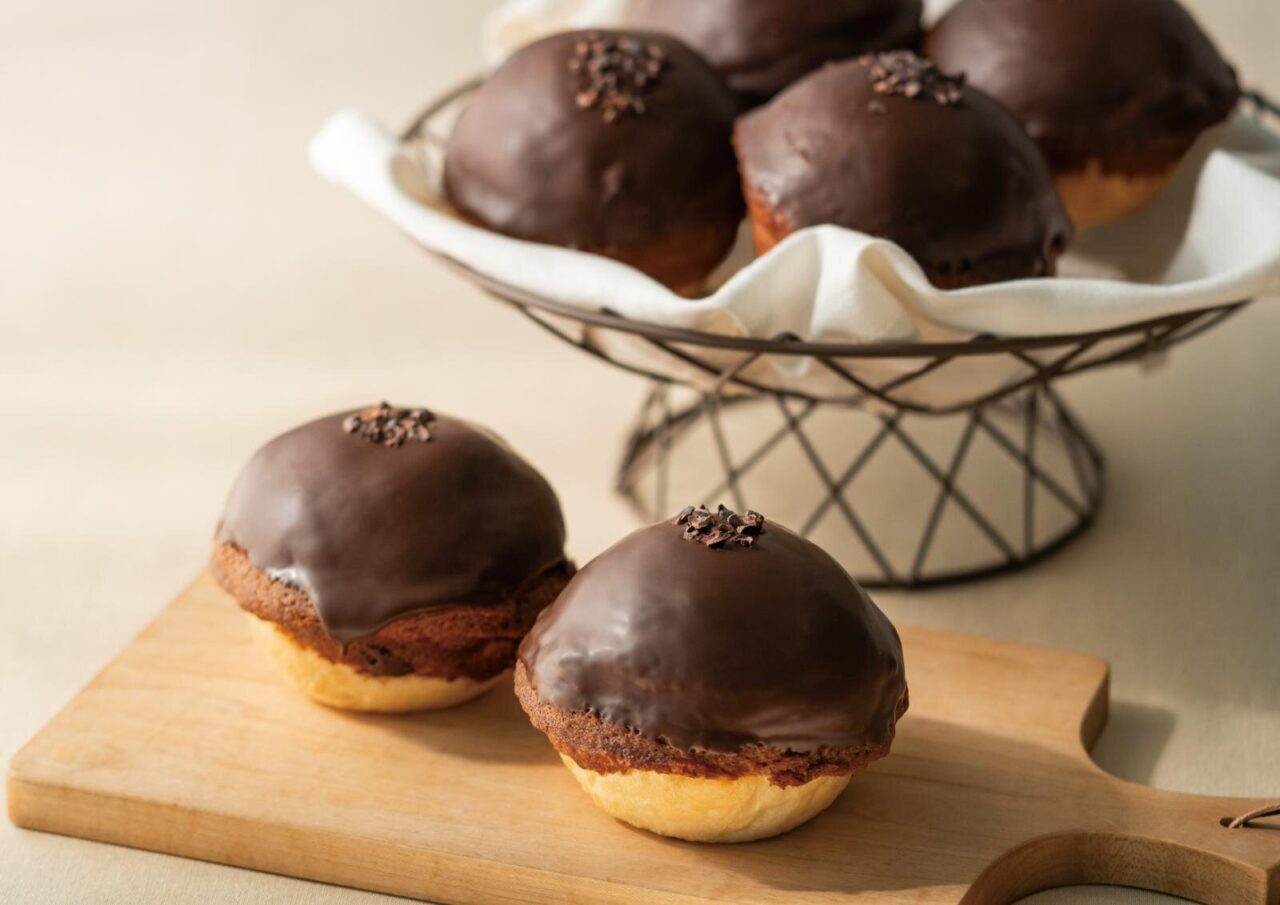 - ショコラブール 345円: ふんわり生地にさっくりとしたココア生地の帽子をかぶせて焼き上げた丸い菓子パン。