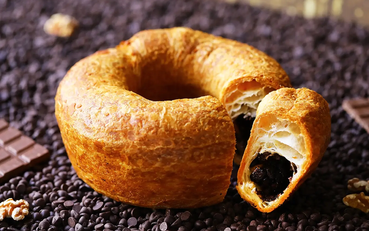- マジカルチョコリングアンティークの代名詞。デニッシュ生地に、オリジナル配合のチョコチップとクルミをたっぷり混ぜ込みました。外はパリッ、中はしっとり、ザクザクした食感の対比が魔法のような美味しさです。