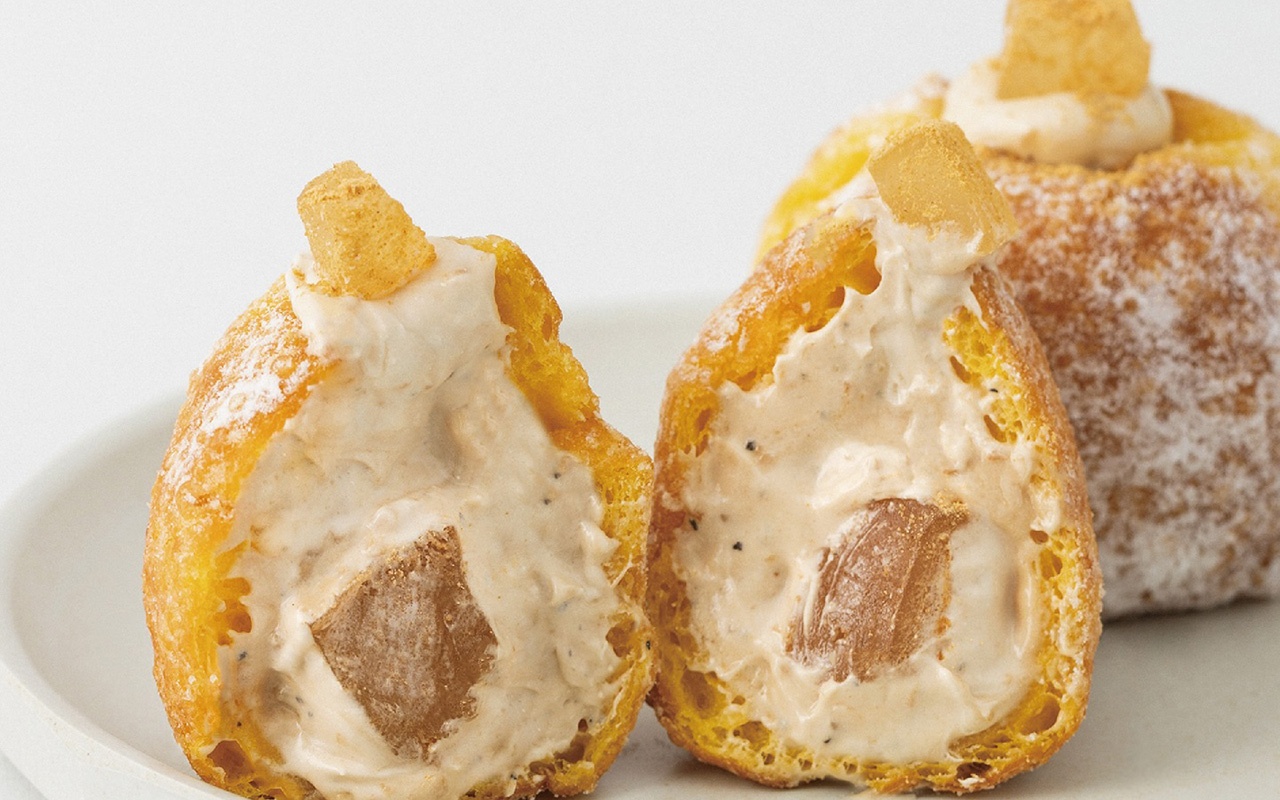 一口サイズのもちもちドーナツを、冷たいクリームにディップして楽しむ新スタイルも!