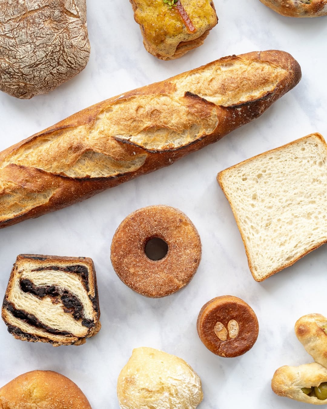 店内には、甘いデニッシュから食べ応えのある惣菜パンまで、目移りするほどのパンが並びます。